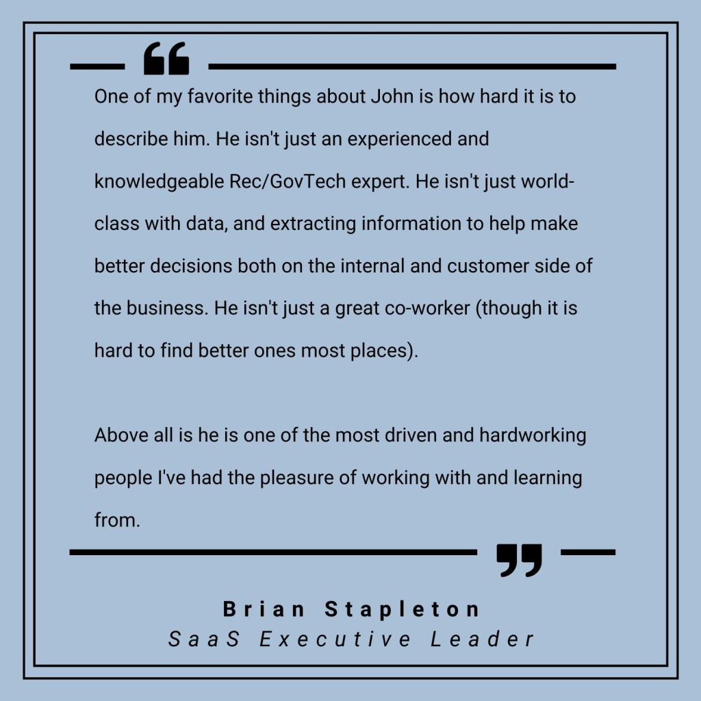 Earlier at CivicPlus, I led implementations for municipal Parks and Recreation departments nationwide. Drawing on more than a decade of industry experience, I guided customers through configuration, data setup, and go-live with a focus on long-term usability rather than short-term launch success. This role sharpened my ability to balance project momentum with empathy, helping customers adopt new systems without feeling overwhelmed.